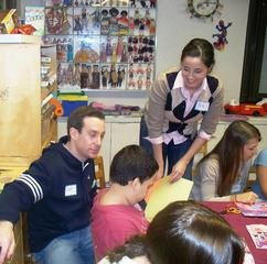 In Reach out and Read, volunteers sit on the floor with children.  Kids are allowed to touch the book, to look at the pages, they are encouraged to ask questions and discuss what is happening to the characters in the book.  In this way the volunteers are modeling great reading skills to parents and encouraging curiosities in the children as well as a love of reading.